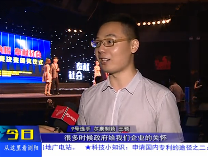 通过此次演讲比赛,王领将尔康制药有责任、有担当的企业形象生动展现在观众面前,演讲赢得了评委和观众的认可。经过评委现场打分评比,王领荣获演讲比赛第四名的好成绩。比赛结束后,尔康制药选手王领还作为优秀企业代表接受了浏阳市电视台的采访。