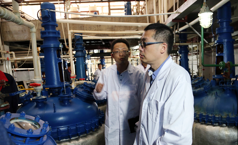 调研组一行实地考察了尔康制药原辅料厂区的生产车间,听取了企业发展情况的汇报。调研中,梁毅恒副局长详细询问了相关药品的工艺和生产流程,对尔康制药秉持“一切为了药品的安全”进行规范化管理和生产,以及为社会做出的贡献表示赞赏和肯定。