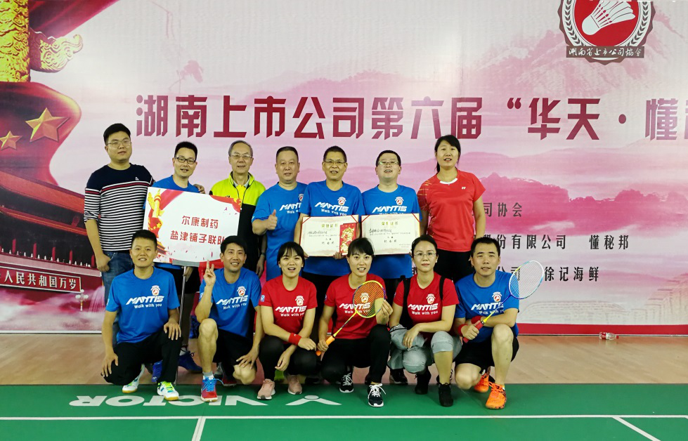 10月19日-20日,湖南上市公司第六届“华天-懂秘邦”杯羽毛球团体赛在省人民体育场隆重举行,来自全省各地40余家上市企业参加比赛。尔康制药和盐津铺子16名运动员组成联队参与了本次羽毛球盛会。