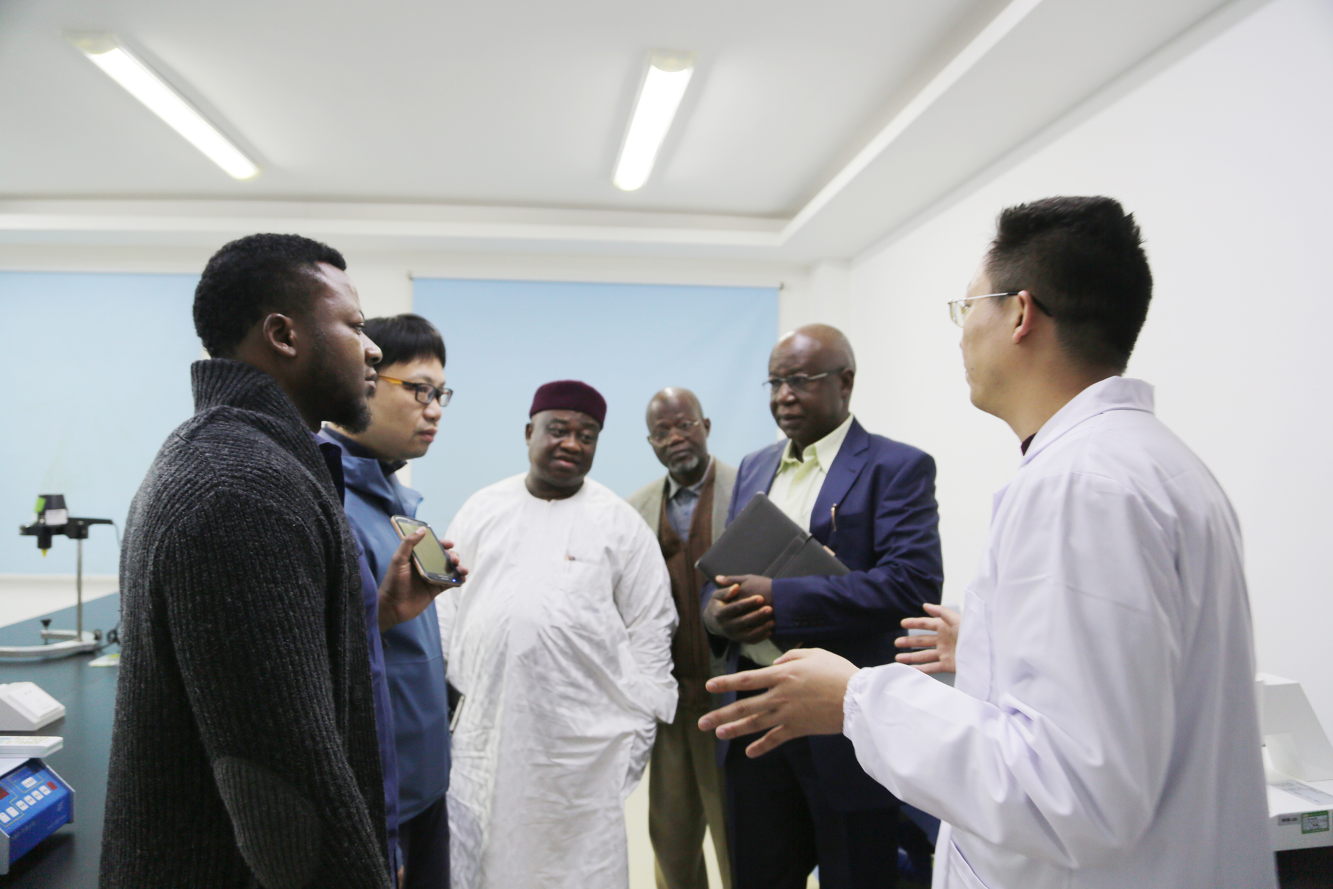 Sam Nda-Isaiah一行参观了尔康制药淀粉胶囊生产车间,认真听取了尔康制药工作人员关于淀粉胶囊生产流程的介绍,随后实地考察了依托尔康制药组建的国家药用辅料工程技术研究中心,详细了解了研究中心的制备和检验检测设备以及科研检验技术的相关情况。